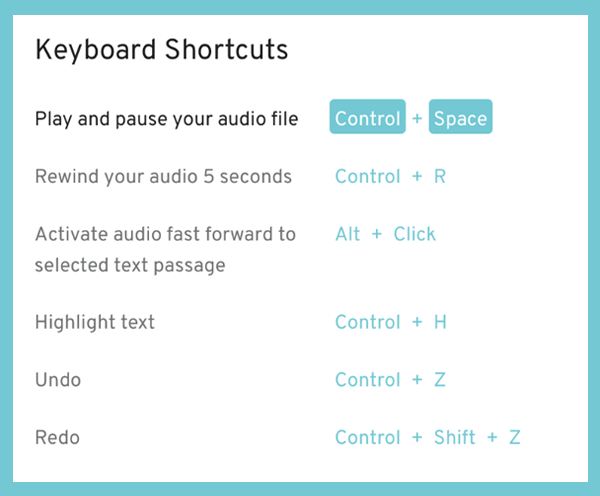 Amberscript is een online applicatie. De educatieve versie van Amberscript via SURFspot bevat dezelfde functionaliteiten als de 'per uur' versie op de site van Amberscript. Een overzicht van de functionaliteiten: